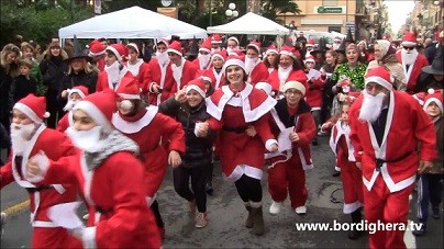 Marcia non competitiva lungo le vie della città di Bordighera  con le divise ufficiali di Babbo Natale e della Befana.