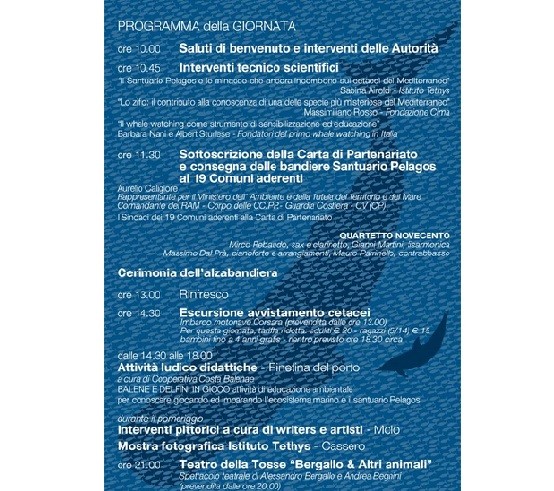 Il Santuario Pelagos, istituito in Italia dal Ministero dell’Ambiente e della Tutela del Territorio con il nome di Santuario per i mammiferi marini è un’area marina protetta compresa nel territorio francese, monegasco e italiano, classificata come Area Specialmente Protetta di Interesse Mediterraneo. Nella sua area, si svolge annualmente la manifestazione nautica internazionale Operazione Delphis e la Regata dei cetacei. In territorio italiano, il Santuario per i mammiferi marini è stato istituito nel 1991 come area naturale marina protetta di interesse internazionale, e occupa una superficie a mare di circa 25.573 km2 nelle regioni Liguria, Sardegna e Toscana. L’area marina protetta internazionale fu invece istituita, con il contributo scientifico dell’Istituto Tethys, grazie all’iniziativa del Rotary Club Milano Porta Vercellina, all’intervento del Rotary International e al sostanziale contributo di AERA (Associazione Europea Rotary per l’Ambiente) nel 1999 grazie alla collaborazione dei tre paesi nella quale il santuario è compreso: Francia (Costa Azzurra e Corsica), Principato di Monaco e Italia (Liguria, Toscana e nord della Sardegna). Essa si estende nel bacino corso-ligure-provenzale da Punta Escampobariou (vicino alla città francese di Tolone) a Capo Falcone e capo Ferro (Sardegna), fino al Chiarone (confine tra Toscana e Lazio) e occupa una superficie marina complessiva di circa 87.500 km2.