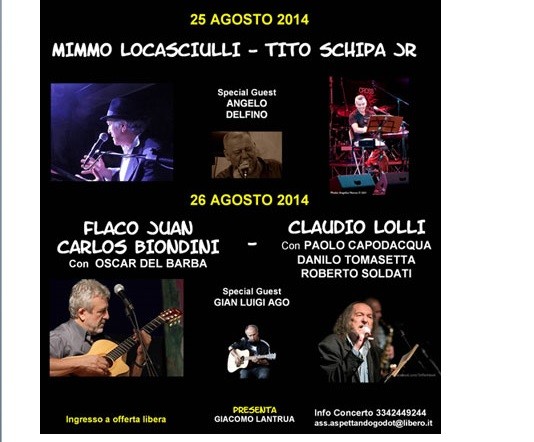 A BORDIGHERA con MIMMO LOCASCIULLI, TITO SCHIPA JR, CLAUDIO LOLLI e FLACO BIONDINI – 25 e 26 Agosto 2014