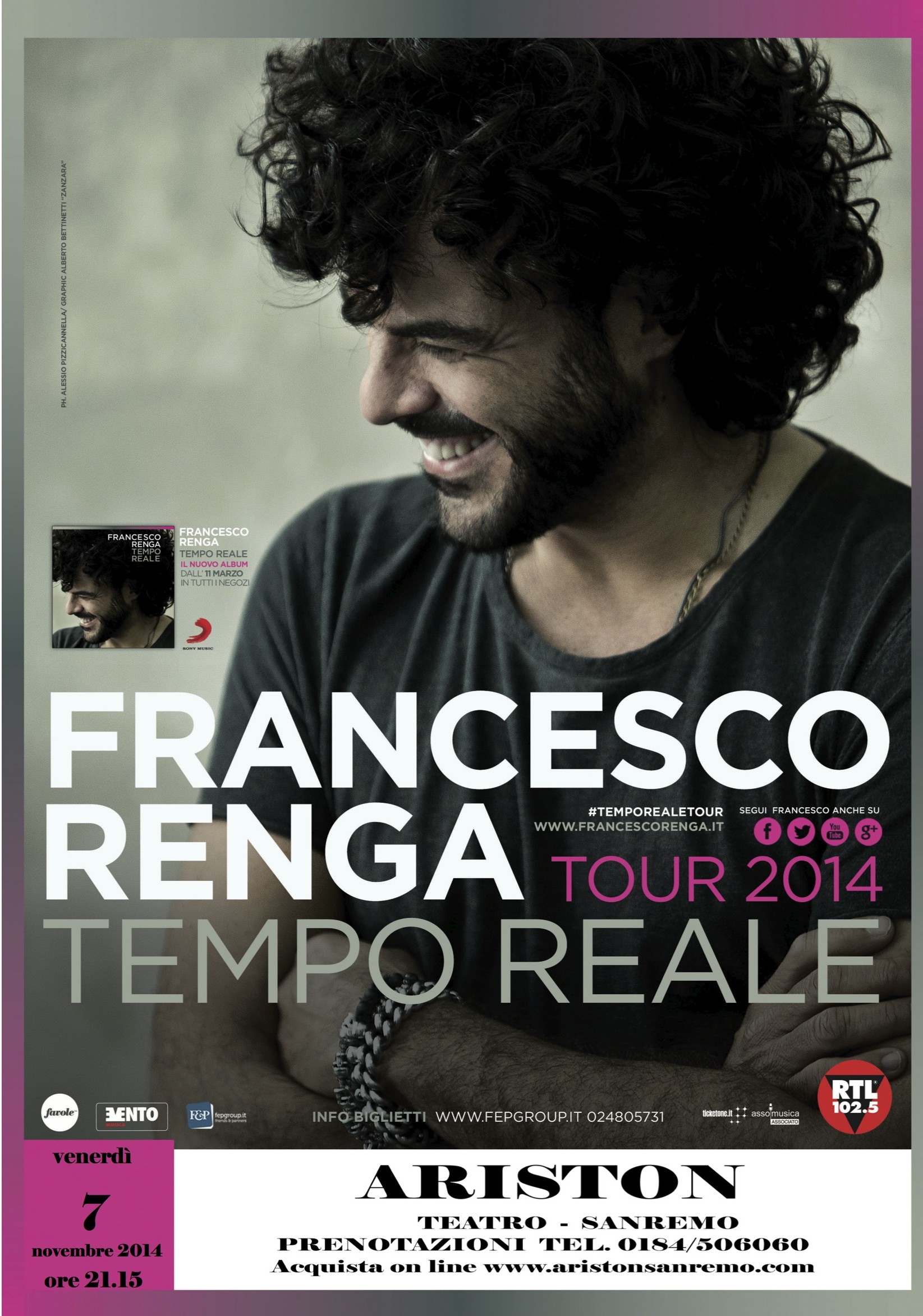 Dopo la data zero di Ascoli Piceno e le prime due presentazioni live di Milano e Roma, Francesco Renga in autunno sarà on stage con TEMPO REALE TOUR, prodotto da F&P Group.