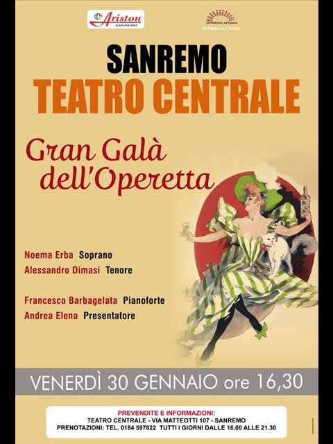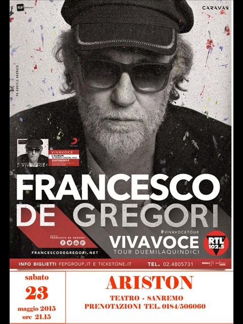 Sabato 24 gennaio al Teatro Centrale di Sanremo è stato presentato dal dott.Walter Vacchino il calendario degli eventi per il periodo (marzo maggio 2015) , come di consueto ci saranno grandi nomi del panorama artistico nazionale tra i quali: Angelo Branduardi venerdì 27 marzo , Fiorella Mannoia sabato 11 aprile, Paolo Migone sabato 2 maggio , Francesco De Gregori sabato 23 maggio. Inoltre: “Le Donne di buon umore” di Carlo Goldoni giovedì 2 aprile , Festival Education Festival il 15-18 aprile, Opera “TOSCA” di Giacomo Puccini venerdì 24 aprile, Sanremo Dance Festival venerdì 1 maggio, Concerto Orchestra Klassica di San Pietroburgo domenica 3 maggio, Premio Internazionale Danza Giovani sabato 9 maggio, Gran Galà della Canzone Italiana Bagutti & Friends venerdì 15 maggio, Città in danza venerdì 22 maggio.