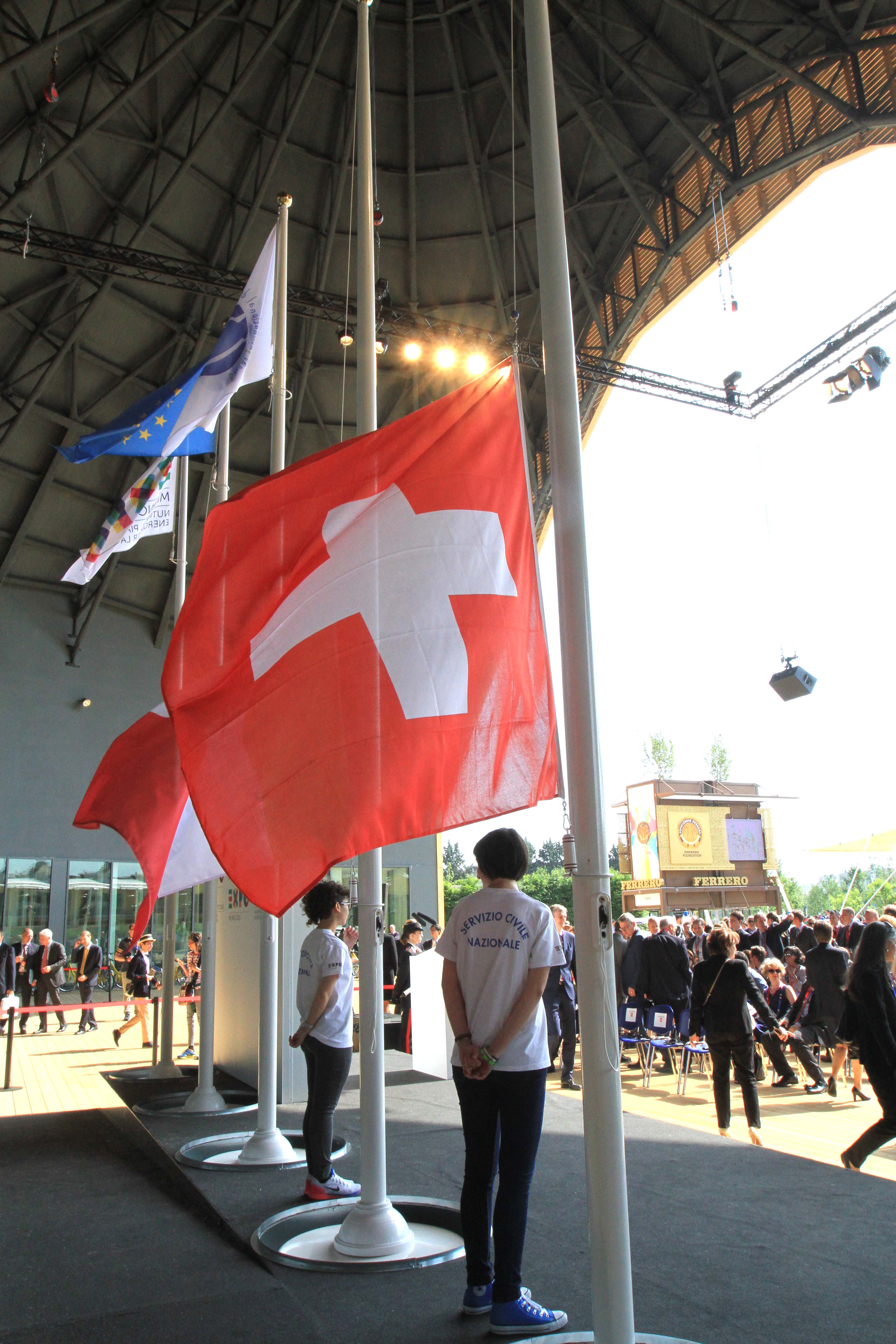 Oggi all’Esposizione Universale si è celebrata la Giornata Nazionale della Svizzera. All’evento è intervenutaSimonetta Sommaruga, Presidente della Confederazione elvetica, che ha partecipato alla cerimonia dell’alzabandiera, accolta da Giuseppe Sala, Commissario Unico Delegato del Governo per Expo Milano 2015, e Bruno Pasquino, Commissario Generale di Expo 2015.