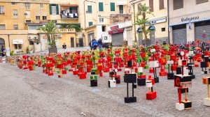 In attesa del Giro d’Italia che sabato 9 maggio attraverserà 17,5 Km di pista ciclabile, da San Lorenzo al Mare a Sanremo, Piazza Borea Olmo, a due passi dal Teatro Ariston, è invasa, in questi giorni, da una curiosa moltitudine migrante, coloratissima e dal look stravagante e originale. Sono gli ABI-TANTI: più di settemila pezzi di varie forme e colori, disponibili al pubblico (soprattutto dei più piccoli), sono pronti per dare vita ad umanoidi contraddistinti da un diverso aspetto e accomunati da un “DNA” comune: il legno.