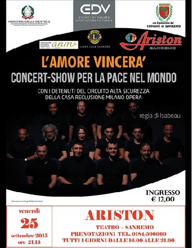 Nella Sala Incontri del Teatro Ariston Sanremo questa mattina conferenza per la presentazione dello spettacolo l’Amore Vincerà – concert-show per la pace nel mondo, con i detenuti del circuito alta sicurezza della casa reclusione Milano Opera. Regia di Isabeau.