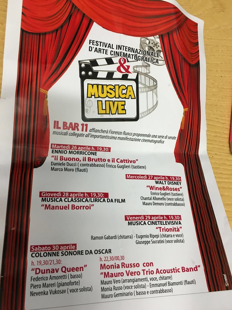 Ed è proprio di queste ultime ore la collaborazione messa in atto dal direttore Artistico del Video Festival Fiorenzo Runco e Monica Tondelli la titolare del Bar 11, locale di piazza De Amicis ad Imperia noto per l’organizzazione di eventi di musica live.