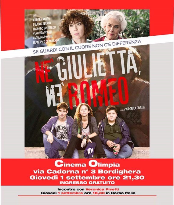 ore 21,30 – Cinema Olimpia: ad ingresso gratuito con la presenza di Veronica Pivetti (regista ed interprete) Né Giulietta, né Romeo.