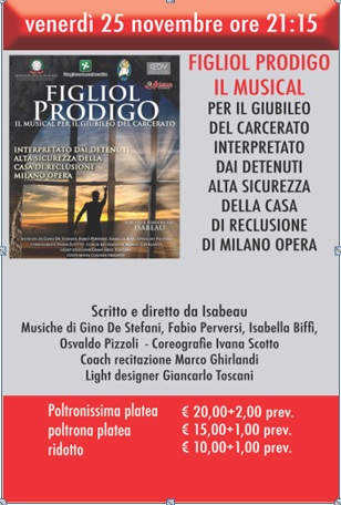 Venerdì 25 novembre 2016 presso il Teatro Ariston di Sanremo  avrà luogo lo spettacolo  “ Figliol Prodigo” (Musical per il Giubileo del carcerato) interpretato  dai detenuti alta sicurezza della casa di reclusione  Milano Opera