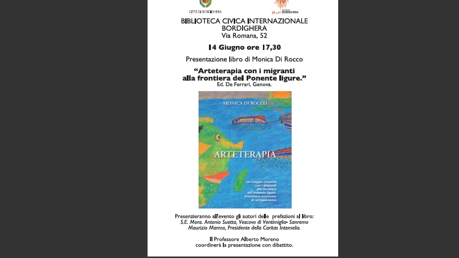 Venerdì 14 Giugno 2019 alle ore 17.30 presso la Biblioteca Civica Internazionale di Bordighera si terrà la presentazione del libro di Monica Di Rocco intitolato “ARTETERAPIA. Un viaggio creativo con i migranti alla frontiera del Ponente ligure. Pratiche e resoconto di un’esperienza.” De Ferrari editore.