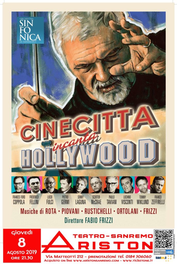 Presenta “Cinecittà ammalia Hollywood un concerto dedicato alle grandi colonne sonore dei più famosi compositori italiani come Nino Rota, Nicola Piovani, Ritz Ortolani, Carlo Rustichelli e Fabio Frizzi. di Piovani, Rustichelli, Ortolani, Frizzi.