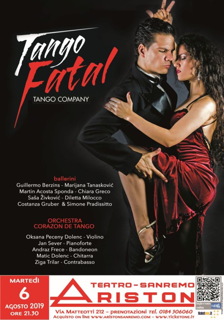 Da  un’idea  artistica  di  Guillermo  Berzins,  ballerino  e  coreografo  argentino  di  fama internazionale, Tango Fatal  fa rinascere sul palcoscenico le sensuali e misteriose atmosfere porteñe in un’ambientazione astratta e sospesa nel tempo. Le romantiche e struggenti note dei più celebri tanghi si alterneranno a spettacolari coreografie contemporanee e all’energia contagiosa del folklore argentino.