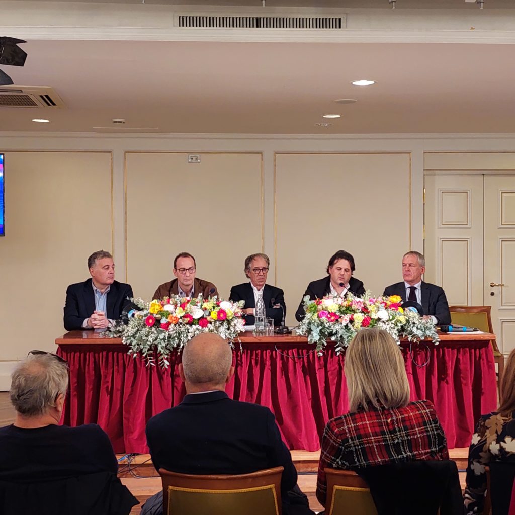 RAI PUBBLICITA’ IN CONFERENZA CON ADRIANO BATTISTOTTI PRESIDENTE CDA CASINO’ E GLI AMMINISTRATORI DI SANREMO ALBERTO BIANCHERI SINDACO E GLI ASSESSORI GIUSEPPE FARALDI E SILVANA ORMEA – MODERATRICE MARA PARDINI