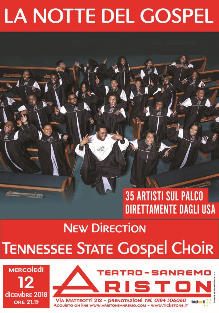 MERCOLEDI’ 12 DICEMBRE 2018 torna al Teatro Ariston “La notte del gospel” con il Tennessee State Gospel Choir una straordinaria corale di 35 artisti per un appuntamento unico e sensazionale.