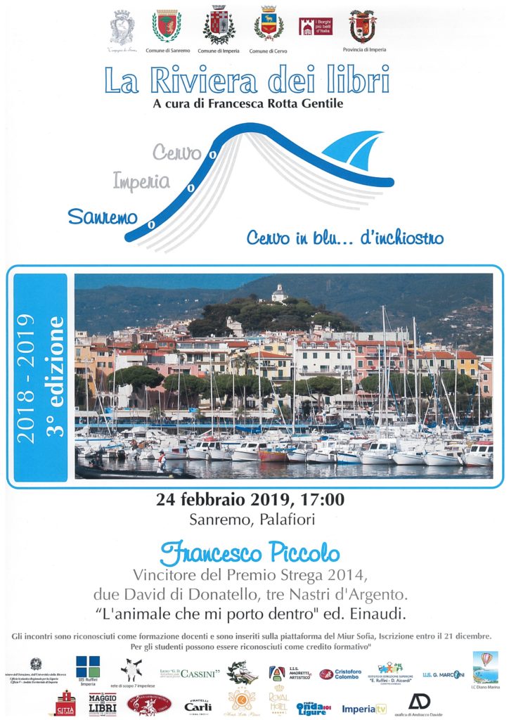 La rassegna “Riviera dei Libri: Cervo, Imperia Sanremo” voluta dall’Assessore alla Cultura del Comune di Sanremo, Eugenio Nocita, vede la collaborazione con gli omologhi assessorati dei Comuni di Cervo ed Imperia, città nelle quali si tengono altri incontri, ed è coordinata dalla professoressa Francesca Rotta Gentile.