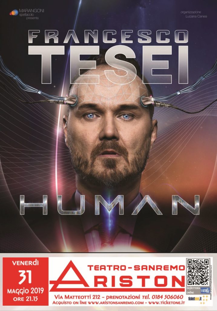 Venerdì 31 maggio, giorno del 56° compleanno del teatro Ariston, appuntamento con il mentalista Francesco Tesei con il suo ultimo spettacolo Human.