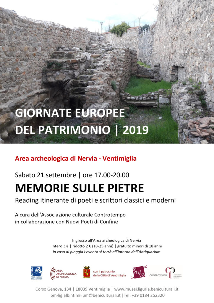 L’Area Archeologica di Nervia (Ventimiglia) propone un’apertura straordinaria sabato 21 settembre dalle 17.00 alle 20.00 con un Reading itinerante di testi di poeti e scrittori classici e moderni a cura dell’Associazione culturale Controtempo in collaborazione con Nuovi Poeti di Confine.