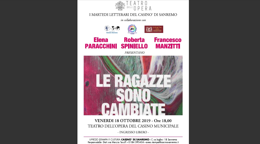 | Venerdì 18 ottobre ore 18.00 nel Teatro dell’Opera nell’ambito dei “Martedì Letterari” presentano il libro “Le ragazze sono cambiate. Le nuove adolescenti nel mondo reale e virtuale”.(Franco Angeli editore) |