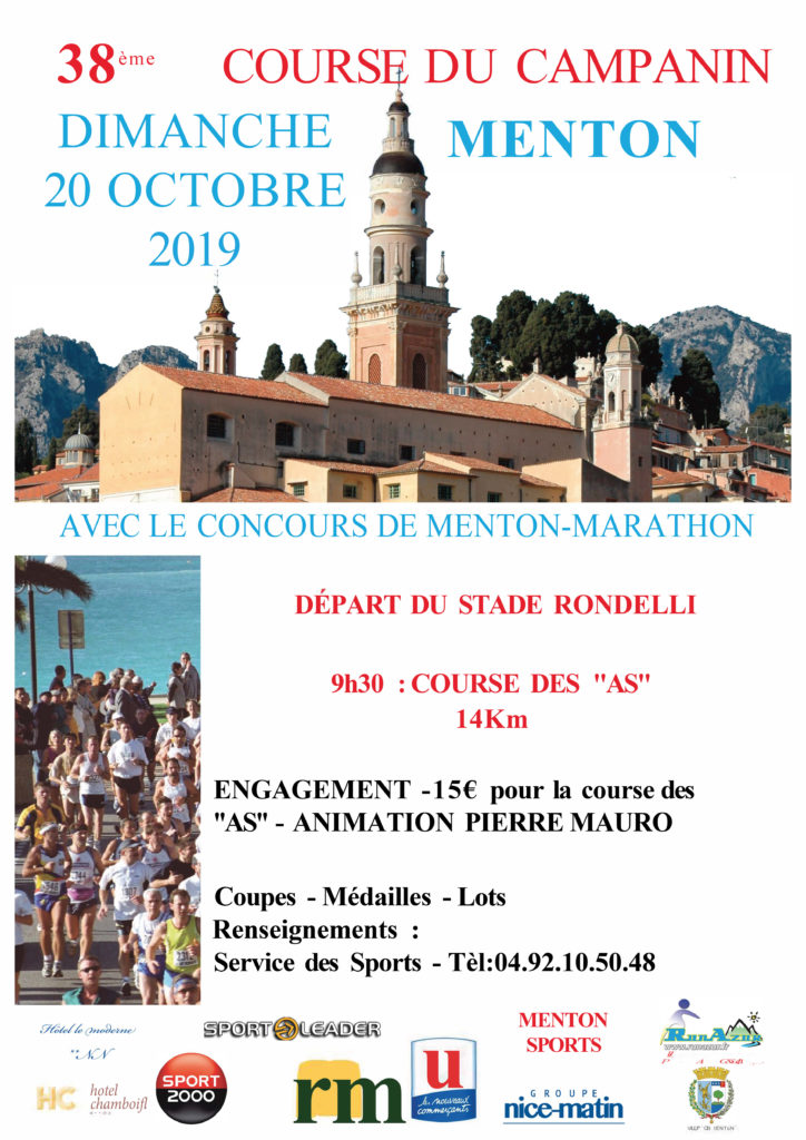 Traditionnelle et attendue chaque année par un grand nombre de sportifs, la Course du Campanin se déroulera dans la cité du citron, le dimanche 20 octobre prochain.