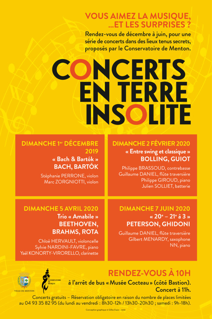 Les concerts en terre insolite, organisés par le Conservatoire de décembre à juin, s’inscrivent dans cette idée du voyage musical vers des destinations mentonnaises inattendues, au sens propre comme au sens figuré.