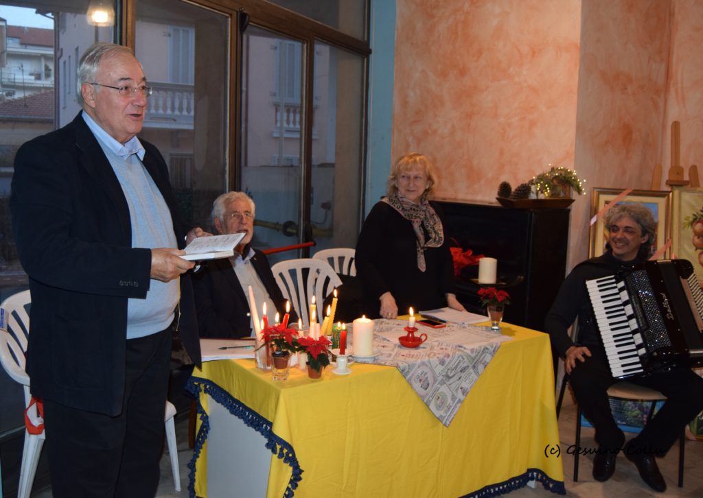 La presidente Giannina Borelli ha portato gli Auguri di Buone Feste, ringraziando tutti quelli che hanno collaborato alla realizzazione dell’evento. Il tesoriere Silvano Volcan ha letto due sue poesie natalizie, il prof. Mauro Mazzon ha illustrato il calendario dei corsi e il maestro Gianni Martini ha allietato i presenti con interventi musicali alla fisarmonica. Il vicesindaco Mauro Bozzarelli ha portato i saluti del Sindaco e di tutta l’amministrazione.