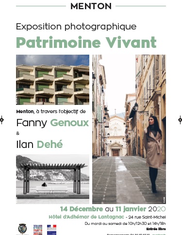 Le service du Patrimoine organise, du 13 décembre au 11 janvier une exposition photographique Patrimoine Vivant, Menton à travers l’objectif de Fanny Genoux et d’Ilan Dehé