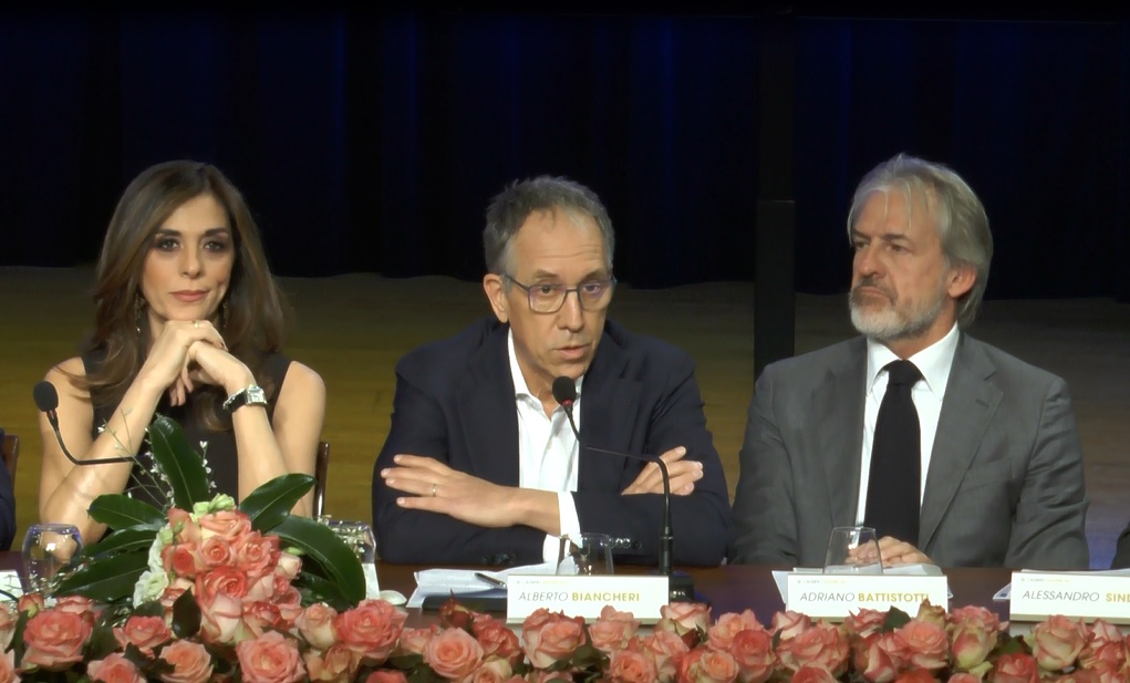 AMADEUS IN CONFERENZA STAMPA al Teatro dell’Opera del Casinò di Sanremo, dopo aver dato il benvenuto a tutti i presenti, ha dichiarato : “ Voglio fare un Festival imprevedibile, guardando con un occhio al passato, ma anche al presente e al futuro. Sanremo 70° deve essere il più grande show che accade, in cui c’è la nostra storia. Si svolgerà all’interno del Teatro Ariston e anche fuori dal teatro. La sacralità del Teatro Ariston va’ rispettata. La Rai si muove in quei giorni tra palco e città con eventi e trasmissioni in diretta. Sanremo appartiene a tutti.