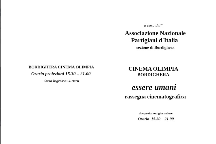 La rassegna è organizzata dall‘Associazione Nazionale Partigiani d’Italia – Sezione di Bordighera, con la disponibilità del Dr. Augusto Venchi, proprietario del cinema .