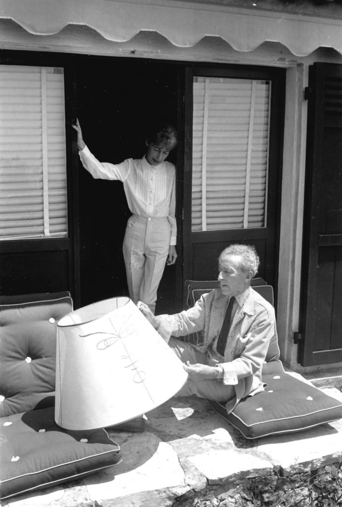 1 -Jean Cocteau décore un abat-jour pour la villa Santo Sospir , circa 1950