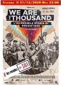 Giovedì 31 dicembre, a partire dalle 22.00, un evento speciale dedicato al debutto on-demand in prima visione di We Are The Thousand – L’incredibile storia di Rockin’1000, il documentario di Anita Rivaroli cheracconta l’incredibile avventura della più grande Rock Band al mondo, composta da 1000 elementi enata per convincere i Foo Fighters ad esibirsi dal vivo a Cesena! In collaborazione con IWonder Pictures, la proiezione sarà preceduta da un’introduzione live in compagnia dei protagonisti del film e della regista Anita Rivaroli, visibile come sempre anche sulle pagine Facebook di tutte le sale aderenti al circuito #iorestoinSALA.