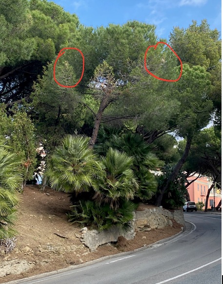 BORDIGHERA – L’EMERGENZA DELLA PROCESSIONARIA NEI PINI SOTTO LA SPIANATA DEL CAPO