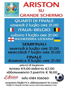 Si comunica che, l’Ariston proietterà in diretta le partite dei quarti, le semifinali e la finale degli Europei di Calcio su grande schermo .