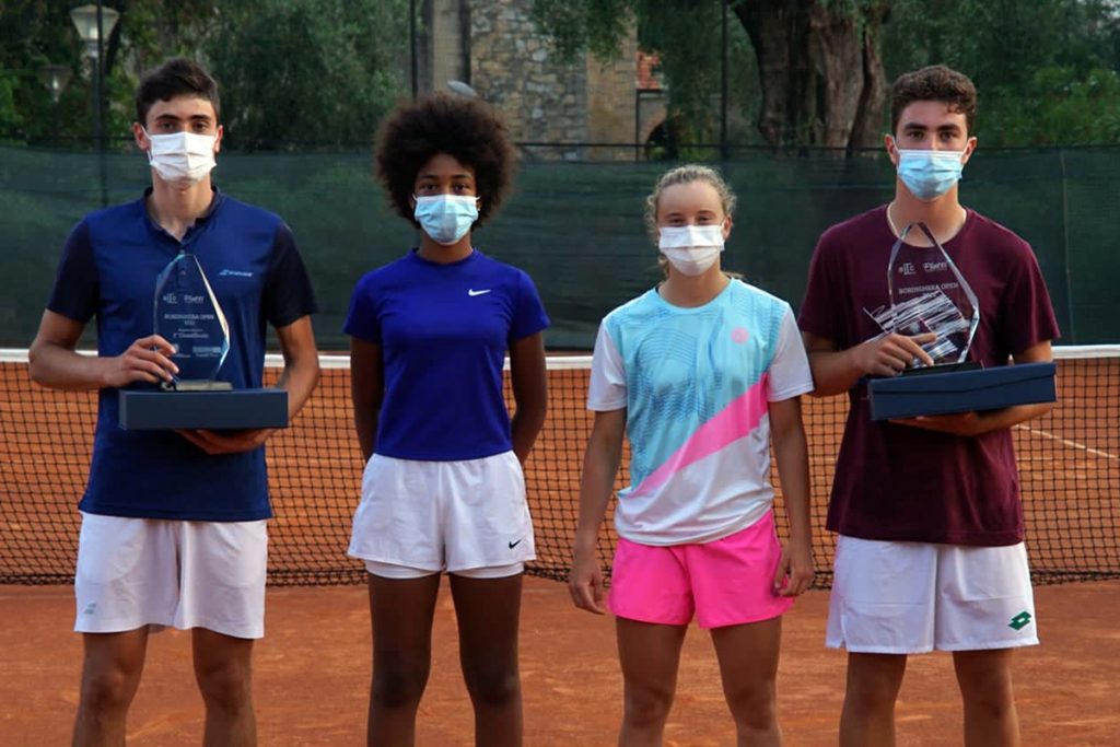 Due finali piacevoli e con tanto pubblico, chiuse con i successi dei giovani atleti di casa, hanno messo la ciliegina sulla torta a due settimane di ottimo tennis. A conquistare i titoli, nell’Open da 1.450 euro di montepremi organizzato dal Piatti Tennis Center sui campi del Bordighera Lawn Tennis Club 1878, sono stati i sedicenni Giacomo Nosei e Masa Viriant, capaci di sbaragliare una concorrenza particolarmente agguerrita. Da applausi il successo del primo, ligure classe 2005, che alla vigilia non era nemmeno compreso fra le teste di serie e invece si è rivelato il più forte di tutti. E anche quello con la migliore tenuta fisica, visto che nella sua cavalcata verso il titolo ha vinto quattro incontri al terzo set. Da raccontare l’ultimo, contro il compagno di allenamenti Peter Buldorini, che ha dominato la prima metà della finale arrivando a condurre per 6-2 3-0, contro un Nosei che pareva decisamente più affaticato. Ma il ligure ha avuto (di nuovo) il merito di non gettare la spugna, ha continuato a cercare una soluzione per entrare nel match e l’ha trovata di lì a poco, superando la tensione della grande occasione e riuscendo finalmente a esprimere il suo miglior tennis. Il livello della sfida si è alzato parecchio e il suo padrone è cambiato, con Nosei che ha prima vinto il secondo set per 6-4 e poi è scappato via definitivamente, approfittando di qualche errore di troppo dell’avversario per imporsi con il punteggio di 2-6 6-4 6-1, fra gli applausi dei presenti.