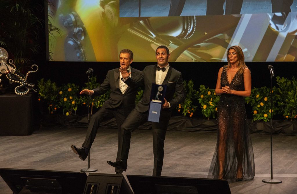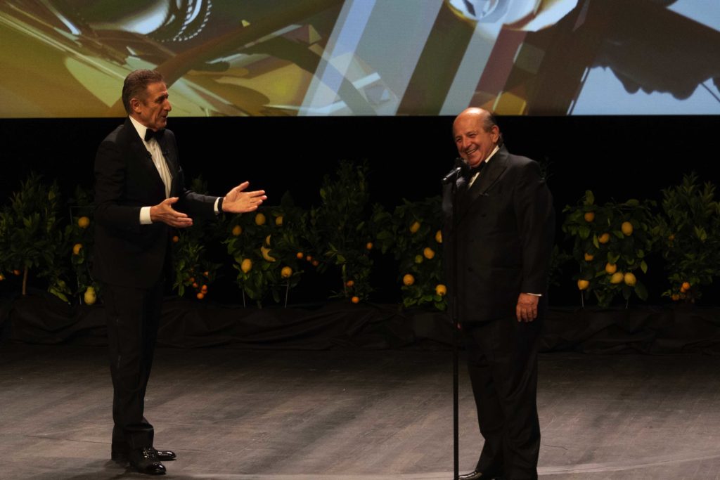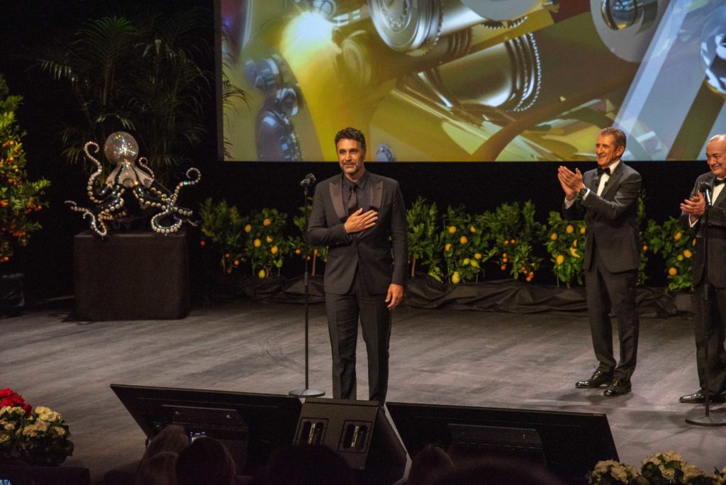 Sul palcoscenico del Grimaldi Forum di Monaco, Ezio Greggio ha presentato la cerimonia di premiazione, alla quale hanno partecipato ospiti internazionali e italiani del piccolo e grande schermo. L’attore di successo Chazz Palminteri (Bronx, I Soliti Sospetti, Terapia e Pallottole, Modern Family), nominato agli Oscar come attore non-protagonista per Pallottole su Broadway di Woody Allen e recentemente apparso in Godfather of Harlem, è arrivato direttamente da Hollywood per ricevere il prestigioso Movie Legend Award.