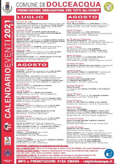 L’elenco completo degli eventi è presente sul sito internet www.visitdolceacqua.it – www.culturadolceacqua.it e sulle relative pagine di facebook ed instagram.