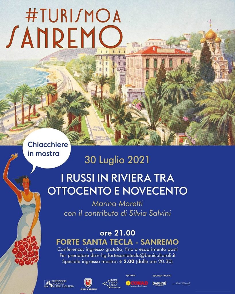 Continuano al Forte Santa Tecla gli incontri legati alla mostra #turismoasanremo, visitabile fino al 31 agosto. Il terzo appuntamento è dedicato a Sanremo e al legame con la comunità russa, una lunga frequentazione che inizia a fine Ottocento e che continua ancora oggi. Un incontro fortunato e determinante per gli sviluppi del turismo.