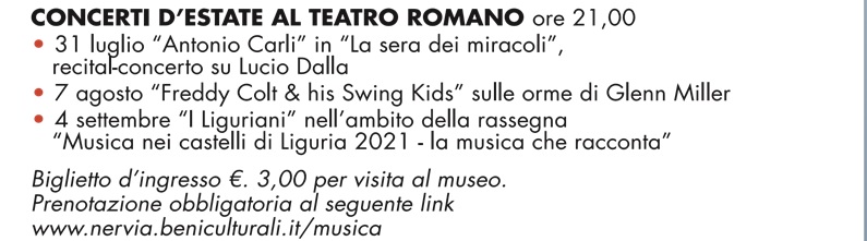 Tutti gli aggiornamenti saranno pubblicati sui siti www.teatropubblicoligure.it e www.comune.ventimiglia.it . Biglietti (15 euro) in vendita presso Ufficio IAT Lungo Roja Rossi (tel. 0184 198309 o 0184 351209). Per informazioni Ufficio Manifestazioni tel. 0184 6183225. Per informazioni sull’area archeologica drm-lig.albintimilium@beniculturali.it , tel 0184 252320.
