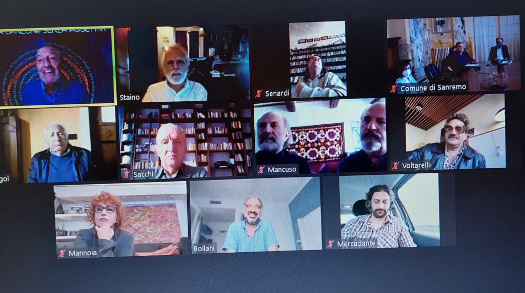 In collegamento streaming c’erano Antonio Silva, Sergio Staino,Stefano Senardi, Comune di Sanremo, Mogol, Sergio Sacchi, Mancuso, Fiorella Mannoia, Stefano Bollani, Mercadante,Beppe Voltarelli, Enrico Ruggeri.