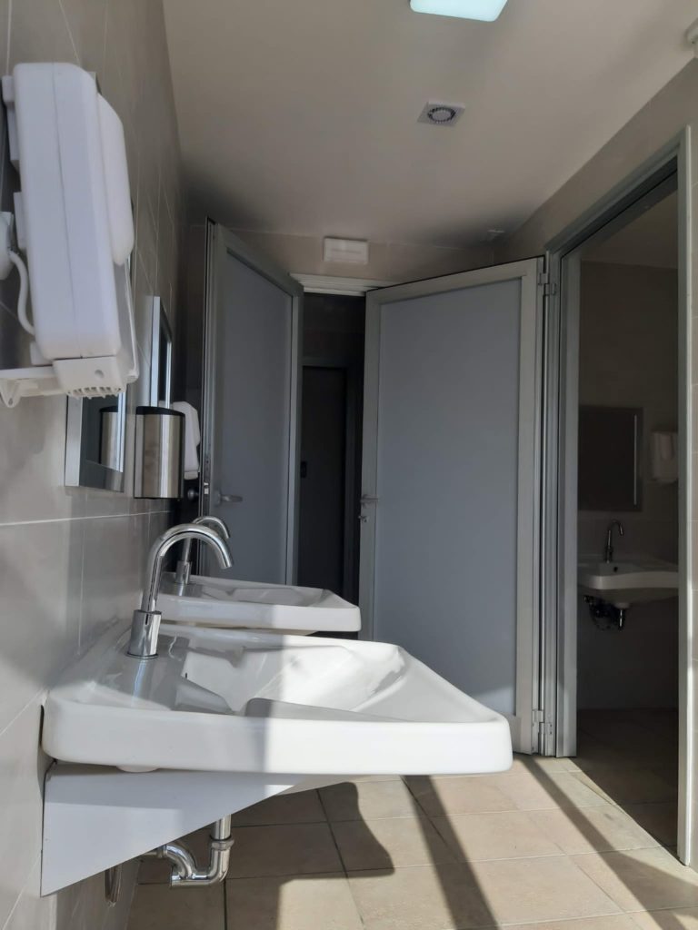 Tutte le dotazioni sono state sostituite e rinnovate, così come i serramenti, ed è stata riorganizzata la distribuzione degli spazi. Oltre a due lavabi con specchio nel disimpegno, sono presenti quattro servizi (due per il pubblico e due per i diportisti, questi ultimi dotati di doccia e phon), tutti realizzati per garantire accessibilità ai disabili; disponibili anche due fasciatoi per venire incontro alle esigenze delle famiglie con bambini in tenera età . La spesa complessiva è stata di circa 64.000 euro.