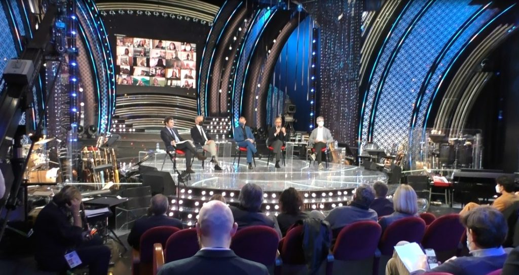 In conferenza sono intervenuti Stefano Marroni Capo Ufficio Stampa Rai, Alberto Biancheri sindaco di Sanremo, Adriano Battistotti Presidente Cda del Casinò di Sanremo, Claudio Fasulo Vicedirettore di Rai1, Stefano Coletta Direttore di Rai1 in video-conferenza