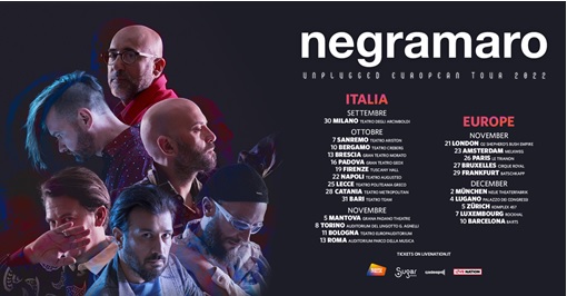 I Negramaro con il loro Unplugged European Tour 2022 tornano così nei teatri dopo oltre 15 anni di assenza, durante i quali hanno conquistato le più grandi venue del paese, dai palazzetti, ai grandi festival, agli stadi.