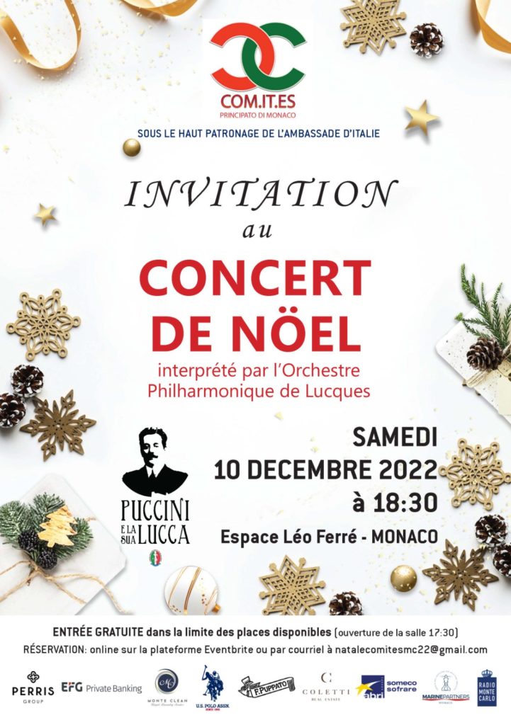 Il Com.It.Es di Monaco è lieto di annunciare che sabato 10 dicembre alle ore 18.30 si svolgerà il Concerto di Natale all’Espace Leo Ferré (25, Avenue Albert II).