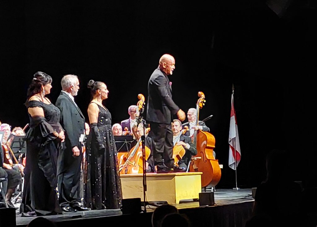 Intenso l’omaggio a Giacomo Puccini con arie fra le più famose, tra le quali ‘O mio babbino caro’ con le soprano Silvana Froli e Deborah Vincenti, l’Intermezzo sinfonico da Manon Lescaut, “E lucevan le stelle” da Tosca. Applausi prolungati anche per il tenore Giovanni Cervelli.