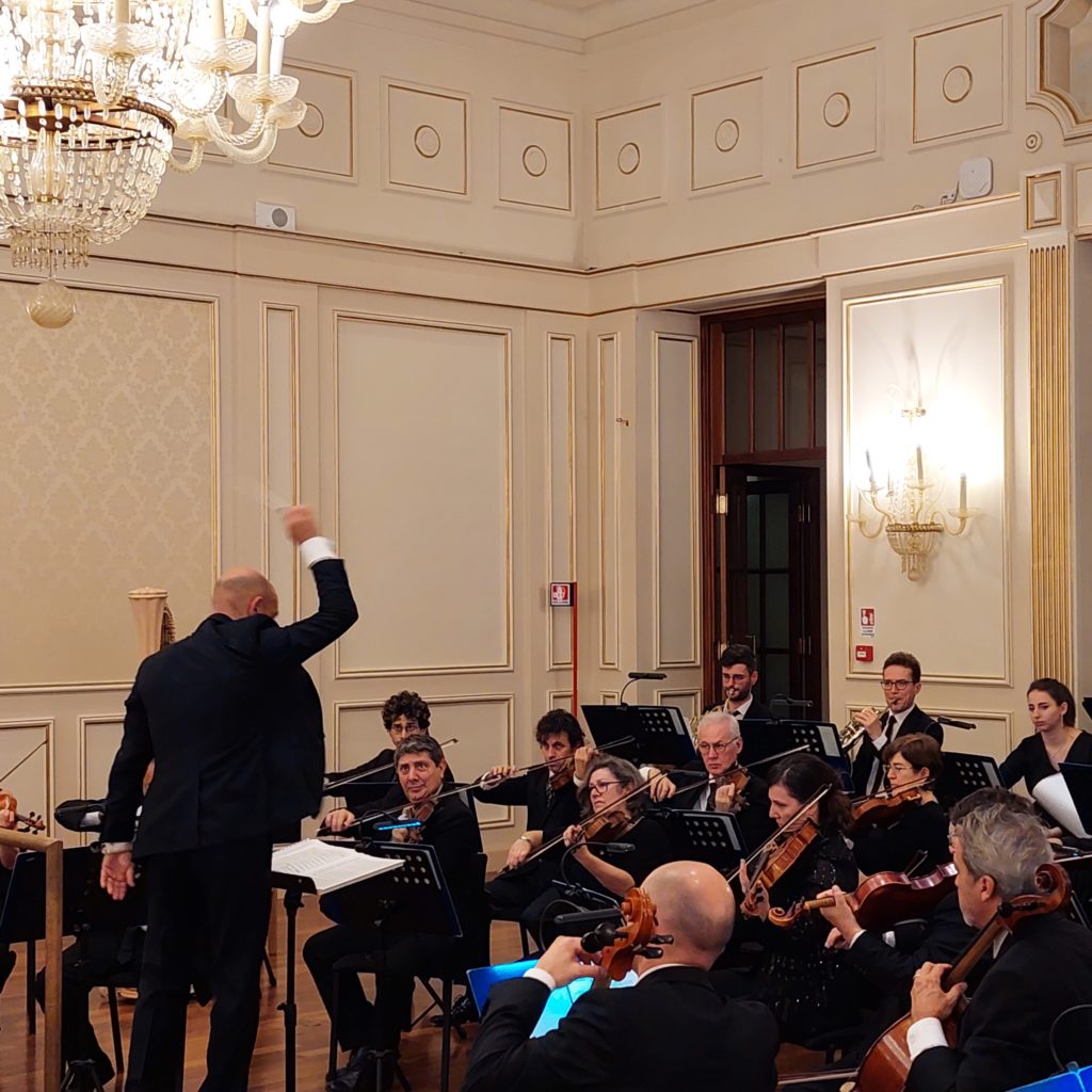 Gli amanti dei Valzer hanno ascoltato con grande piacere l’esecuzione del ” Valzer dell’Imperatore Op. 437 ” che Johann Strauss scrisse nel 1889 in omaggio dell’Imperatore Francesco Giuseppe in visita al Kaiser Guglielmo II a Berlino. Dopo un’introduzione delicata e un momento marziale segue il vero valzer vitale e poi ricco di nostalgia. Il programma del Concerto ha offerto le versioni orchestrali di ” Voci di primavera”Op.410 scritto nel 1883 e del celeberrimo “ Il bel Danubio blu”. Scroscianti applausi da parte del pubblico dopo ogni esecuzione ed in particolare la partecipazione dei presenti sulle note della ” Marcia di Radetzky” diretti dal M° Giancarlo De Lorenzo.