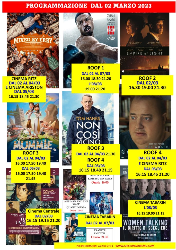 PROGRAMMAZIONE CINEMA SANREMO DAL 02 MARZO 2023