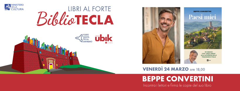 Domani 24 marzo alle ore 18 presso la sala “Magazzino di Ponente” di Forte Santa Tecla primo appuntamento della rassegna “BiblioTecla – Libri al Forte” con ospite Beppe Convertini.