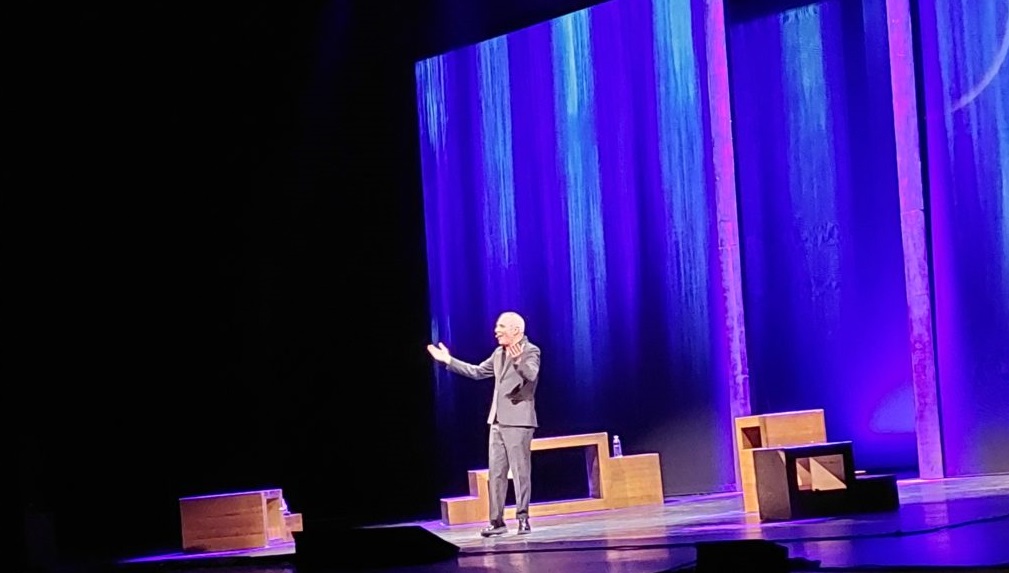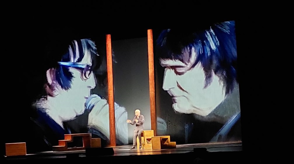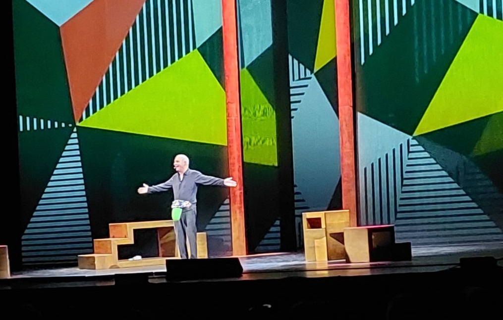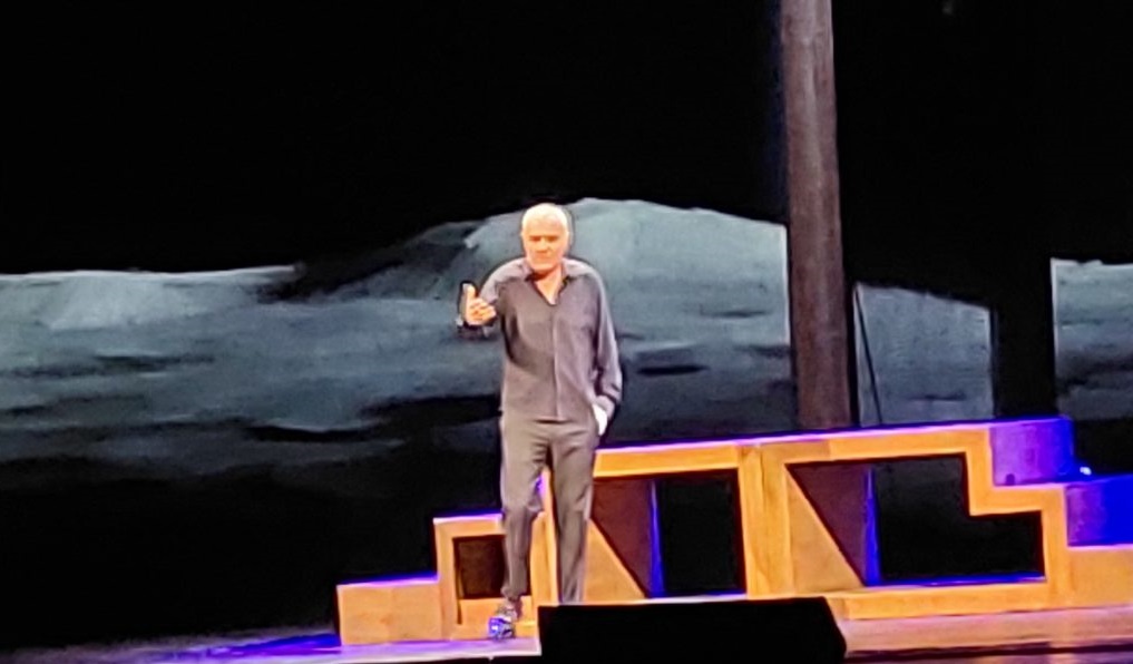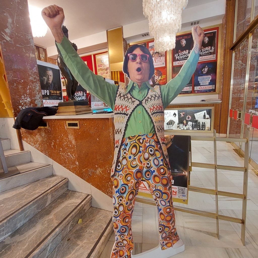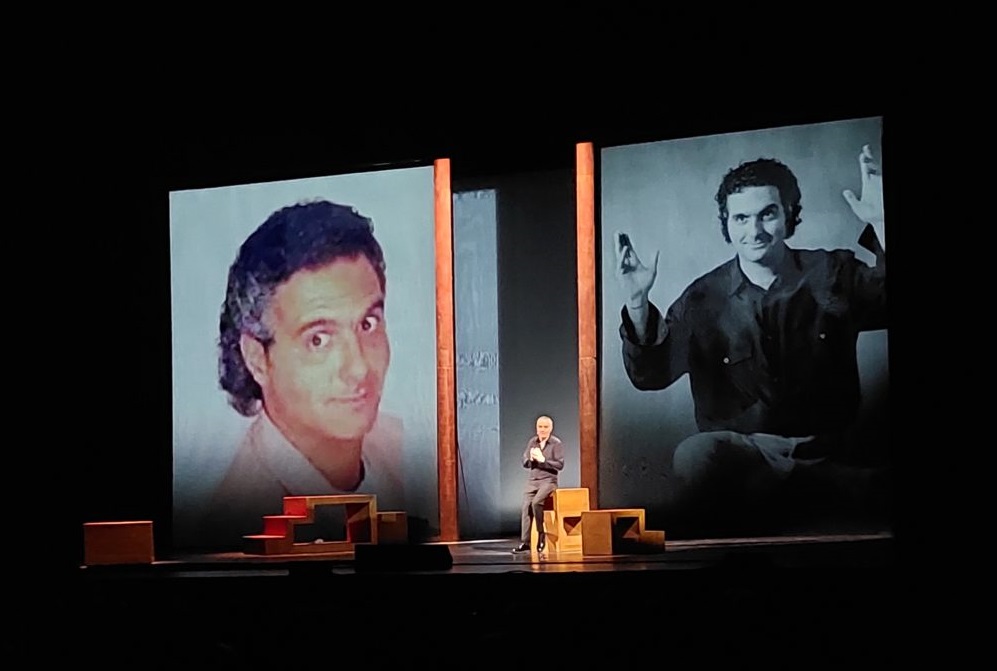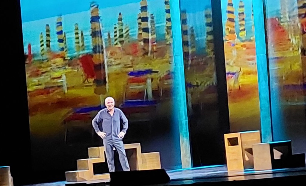 La storia è quella di un ragazzino Giorgio cresciuto dai Nonni materni, in un piccolo paese, in Toscana, che ha cominciato a lavorare molto presto, anche se il suo sogno era di fare l’attore, diventando poi celebre. Oggi Giorgio Panariello è diventato uno dei comici più popolari, 30 anni di carriera, è un artista a tutto tondo, che durante lo spettacolo ci ha molto divertiti, tante risate e consensi con calorosi applausi. Un vero artista che si è svelato attraverso le performance dei suoi personaggi, a cominciare da ” Merigo” il campanaro del paese , Mario il Bagnino, e Renato Zero, in cui Panariello si materializza, risalendo le scale del successo.