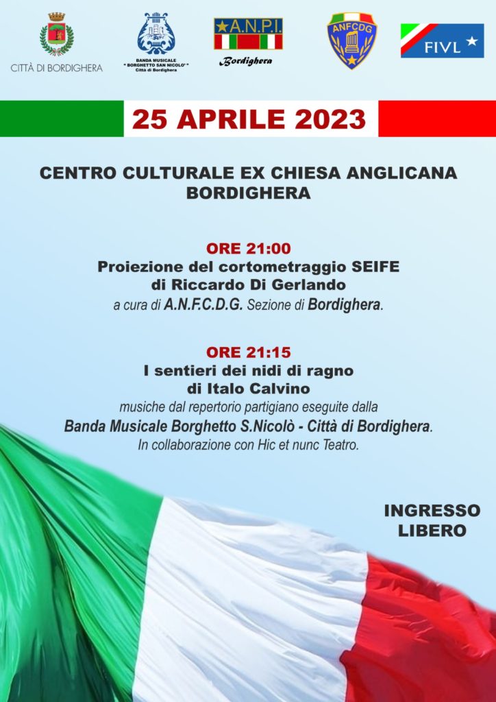 Il Comune di Bordighera rende noto il programma delle celebrazioni in occasione del 25 aprile 2023 – 78° Anniversario della Liberazione.