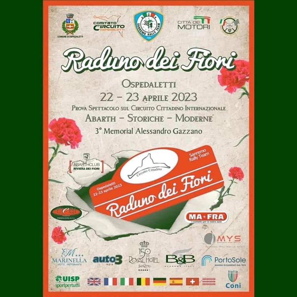 Raduno dei Fiori – Il fine settimana del lungo ponte del 25 aprile a Ospedaletti sarà caratterizzato dal ‘Raduno dei Fiori– 3° Memorial Alessandro Gazzano’, prova spettacolo sul Circuito Cittadino Internazionale per auto Abarth, Storiche e Moderne, organizzato dal Sanremo Rally Team.