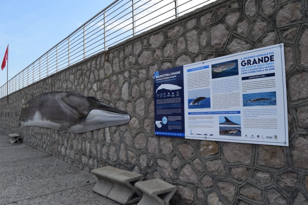 Camminare a fianco di creature iconiche che non vivono in mari esotici, ma nelle acque antistanti Bordighera, scoprire cosa mangiano, come vivono e come comunicano fra loro porta i visitatori ad avere una nuova percezione del Mar Ligure, che da luogo dove nuotare e rinfrescarsi durante l’estate si trasforma in un mondo strordinario e attrattivo, da conoscere e vivere attraverso attività esperianziali. Uscire in mare, trovarsi a poche decine di metri da un enorme balenottera comune o vicinissimi a un grande gruppo di delfini che cavalcano l’onda di prua dell’imbarcazione, suscita in chiunque un coacervo di emozioni che porta ad una nuova consapevolezza dell’importanza del patrimonio ambientale rappresentato dal Santuario Pelagos.