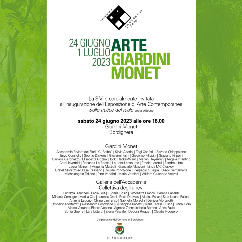 Sabato 24 giugno 2023 alle ore 18:00, avrà luogo l’inaugurazione della mostra di pittura “SULLE TRACCE DEL REALE” 6^ edizione, che si svolgerà a Bordighera nei Giardini Monet in Via Lamboglia dal 24 giugno al 1 luglio 2023.