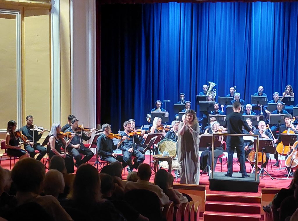 Domenica 16 Luglio ore 21:00 al Teatro dell’Opera del Casinò di Sanremo ha avuto luogo uno spettacolo dal titolo ” La Voix Humaine” sulla musica di Francis Poulenc e il libretto di Jean Cocteau. Un vero successo , il ruolo della protagonista è stato affidato a Diana Lamar soprano celebre per la sua potente vocalità , diretta dal M° Matteo Beltrami. Una coproduzione del Teatro dell’Opera Giocosa di Savona con l’Orchestra Sinfonica di Sanremo, la regia a cura del grande soprano Renata Scotto. Il tema del tragico monologo recitato e cantato con una estenuante telefonata di Elle( LEI ) è il folle amore per l’ex-amante.